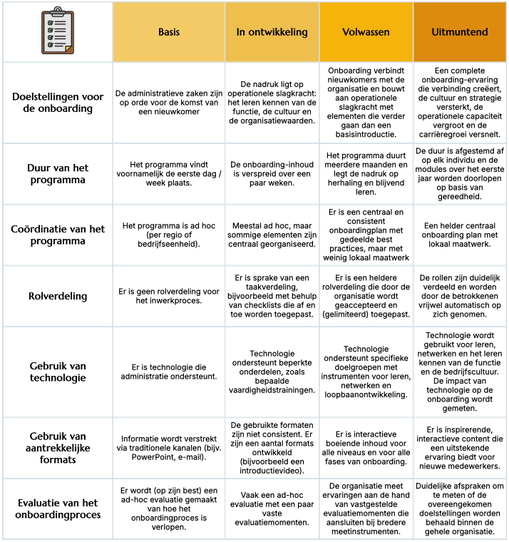 LET OP: In dit gevorderde stadium verschuift de focus van verdere ontwikkeling naar het actueel houden van het programma en het behouden van de betrokkenheid van medewerkers. Dit is een aanzienlijke uitdaging voor volwassen onboardingprogramma’s.